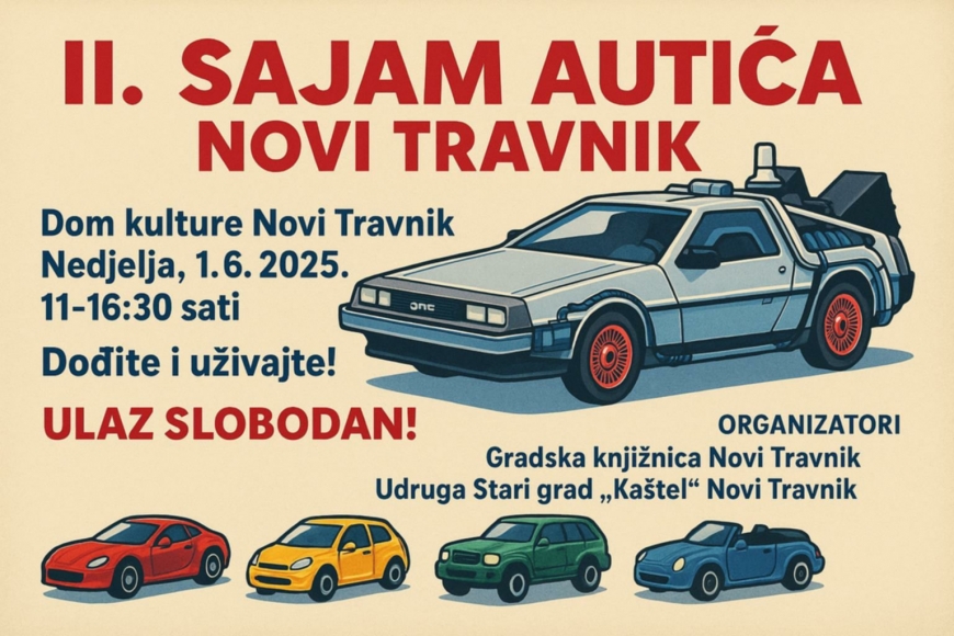 U organizaciji Gradske knjižnice Novi Travnik i Udruge Stari grad "Kaštel" Novi Travnik u nedjelju, 1. lipnja od 11 do 16:30 sati u Domu kulture Novi Travnik povodom Dana Grada Novi Travnik održat će se drugi po redu Sajam autića.